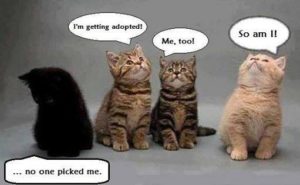 In honor of National Black Cat Adoption Day any approved application on a black cat submitted today will be only $25 to adopt. Submit your application today, August 17, 2017, and we will match you up with one of our many wonderful black kitties. We have black cats in an assortment of different sizes and ages. Send in your application today via email and once processed (normally one business day) we will honor the discounted adoption fee. Click on the Adoptions link at the top of this page for information on our adoption policies and the link to our downloadable application.