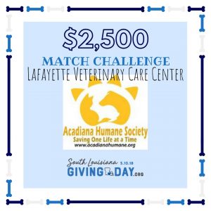 A special thank you goes out to our friends at Lafayette Veterinary Care Center for their generosity with their matching grant for today’s fundraiser! https://www.southlouisianagivingday.org/AHS