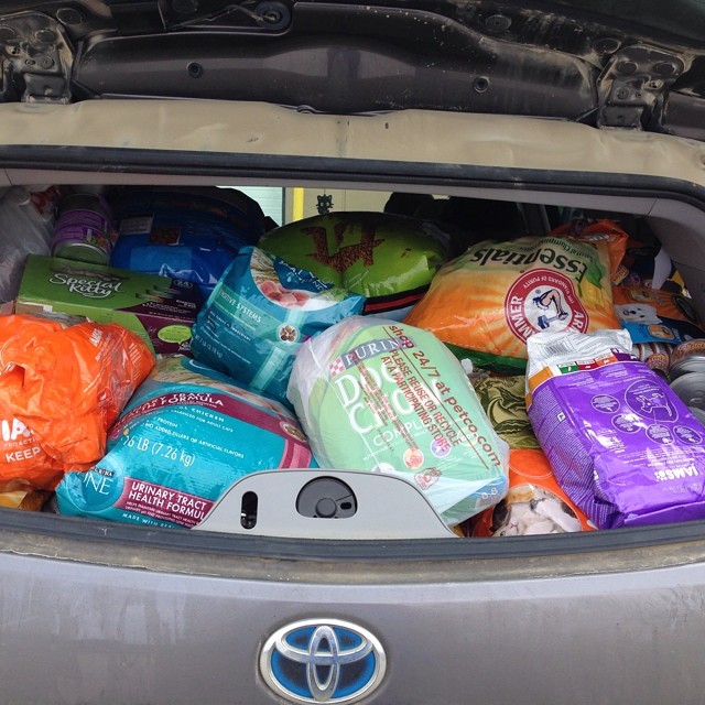 The 2012 Toyota Highlander Hybrid can hold quite a few crates of rescue animals for transporting, as well as lots of dog and cat food for hungry animals in need!