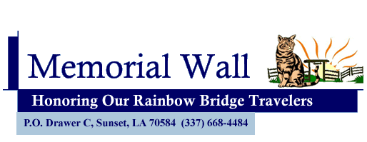 Please copy and paste the following form below to email, fill out the appropriate information and email to info@acadianahumane.org, along with a favorite photo of your pet as an attachment. We also accept donations in honor of human friends, animal lovers, caring supporters on a special Memorial Wall of their own. Simply let us know the words to inscribe on the brick. |