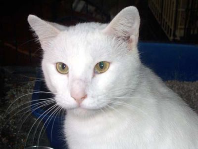 rescue. He is a handsome young solid white cat. He is a big boy in size,