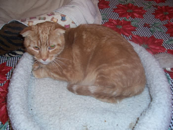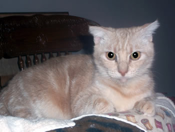 peach-buff colored. Nellie is a darker orange patch tabby color,